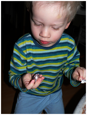 maart 23, 2008 on 2:28 pm | In Bla bla bla, Dit is nu, Peuter | 28 CommentsMietjes als we zijn, hadden we de paaseitjes gisteravond binnen* verstopt. En wel in de brandweerauto, de garage, de camperbus, de ballentoren en z’n werkbankje. En nog ergens. Peuter heeft ze allemaal gevonden. Slim kind.