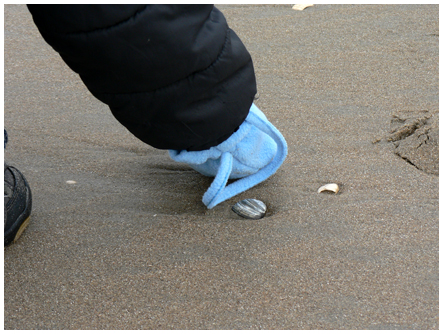 en ja, wat je ziet, is een schelp. Peuter’s handje had het eitje namelijk al te pakken. pietlut 😉